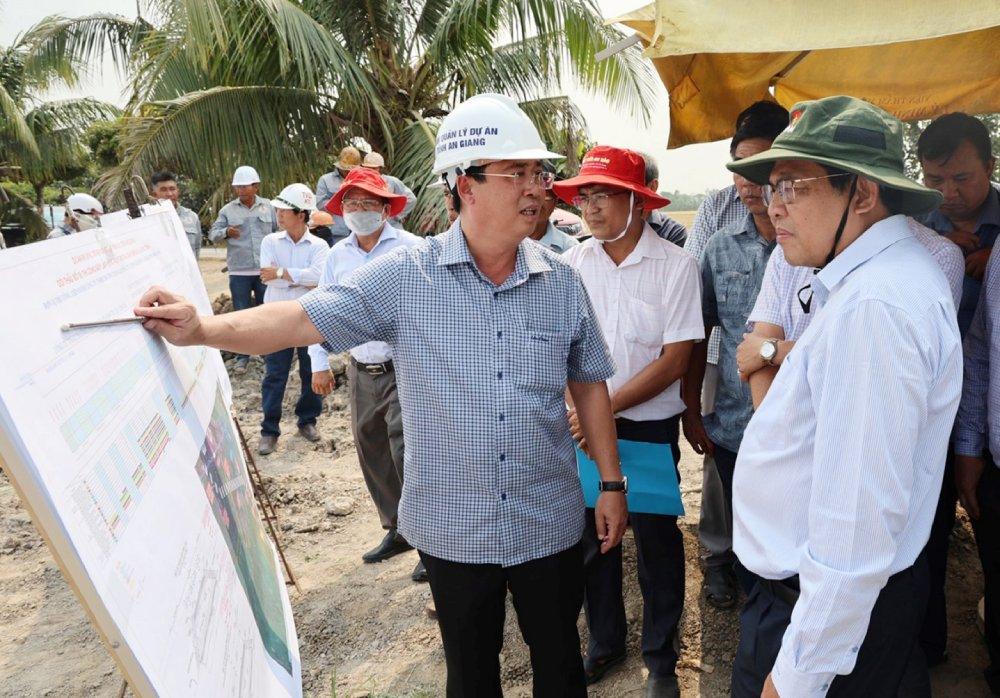 Sau khi kiểm tra thực tế, Phó Chủ tịch UBND tỉnh An Giang Ngô Công Thức yêu cầu chủ đầu tư tăng cường kiểm tra, đôn đốc nhà thầu, chủ động tìm kiếm và tập kết vật liệu phục vụ thi công.
