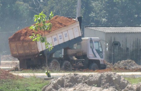 Trước đó, sáng 25-12-2014, tại hầm đất trên, chúng tôi ghi nhận hai xe hối hả múc đất lên đoàn xe tải tám chiếc (bốn chiếc lớn, bốn chiếc nhỏ) lần lượt ra vào hầm. Bám theo đoàn xe, chúng tôi phát hiện thay vì chở đất san lấp phục vụ cho đường cao tốc thì đoàn xe chạy đến hai khu đất ở ấp 2, xã Long An đổ để san lấp mặt bằng. Theo tìm hiểu của chúng tôi, khu đất đang được san lấp là của một người dân tên P. và một người tên M. Trong đó, đất ông P. khoảng 500 m2 đang san lấp mặt bằng để xây nhà. Còn khu đất của ông M. hơn 4.000 m2 đang san lấp để phân lô bán nền. Theo một người dân, ông M. đã đổ hơn 200 xe đất để san lấp mặt bằng nhưng vẫn chưa đủ.