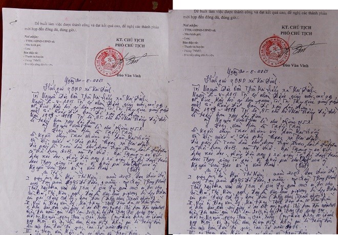 Theo hồ sơ người dân cung cấp, ông Nguyễn Đức Vân (bí thư chi bộ đồng thời là trưởng Ban xây dựng điện thời điểm đó) cũng xác nhận bằng văn bản, cho biết: “đến nay một số giấy tờ bị đánh tráo hoặc thay đổi giấy tờ gốc”.
