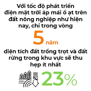 Riêng ở 3 tỉnh Đắk Nông, Gia Lai, Đắk Lắk, số lượng dự án điện mặt trời đã tăng gấp 5 lần trong một năm qua, trong đó có trên 40% công suất hòa lưới điện đến từ các trang trại nông nghiệp (thống kê từ Công ty Điện lực Đắk Nông, Công ty Điện lực Đắk Lắk). Với tốc độ phát triển điện mặt trời áp mái ồ ạt trên đất nông nghiệp như hiện nay, chỉ trong vòng 5 năm tới, diện tích đất trồng trọt và đất rừng trong khu vực sẽ thu hẹp ít nhất 23%.