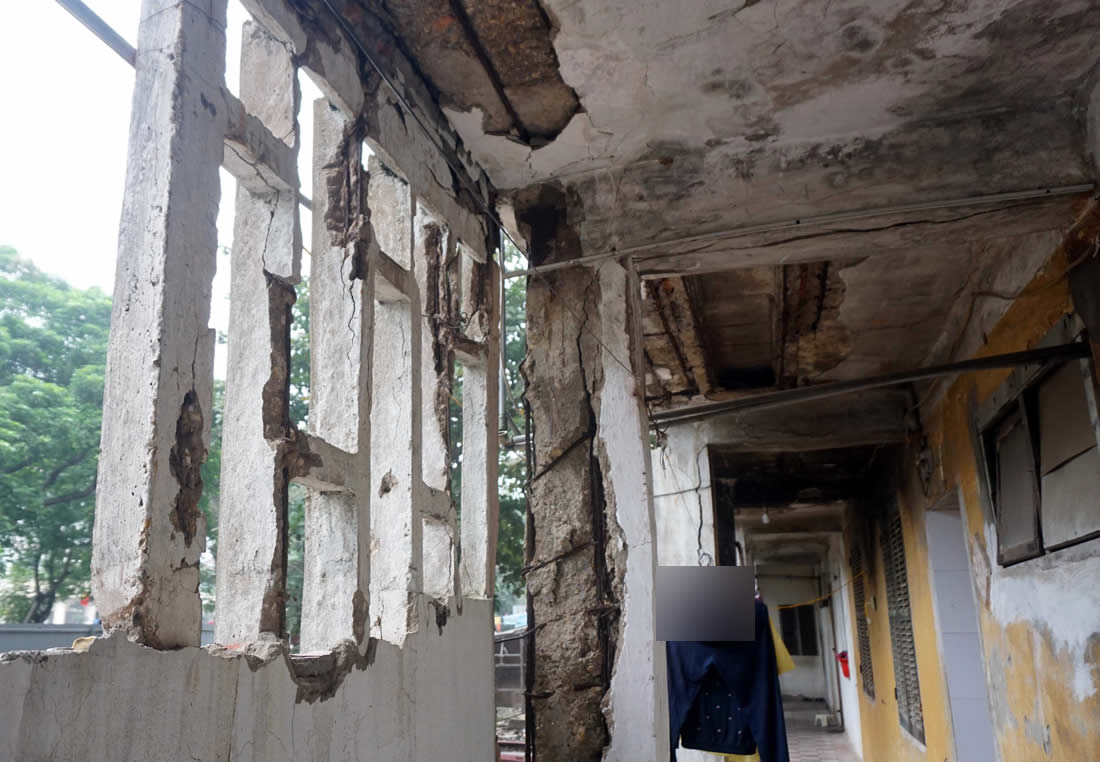 Hành lang bong tróc nghiêm trọng.