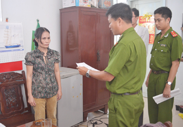 Bắt giữ Hồ Bích Nga và thực hiện lệnh khám xét nhà của Nga. Ảnh: TT