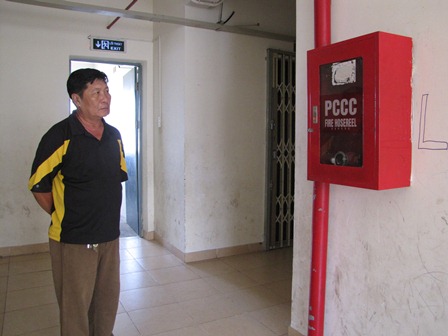 Thời gian đầu, tình trạng đánh nhau, mất trộm cũng thường xảy ra. “Công an phường kế bên nên tình hình an ninh tương đối ổn định lại rồi. Còn cái hộp phòng cháy chữa cháy này, cô nhìn xem, đâu có ống dây dẫn nước. Lỡ mà hỏa hoạn xảy ra thì nguy hiểm lắm. Nhưng cứ lắp ống dây mới vào là bị mất cắp. Ban quản trị đành phải gửi nhờ ống dây ở một số hộ thường xuyên có người ở nhà để trông coi”, ông Quang than vãn.