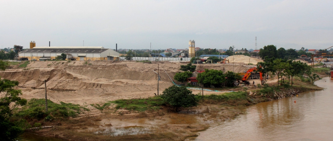 Bãi cát đen rất lớn đang hoạt động khu vực cầu Triều Dương, Hưng Yên.