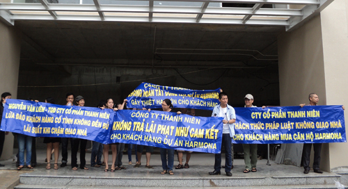 Trên thị trường Tp.HCM, tình hình cũng không khá hơn khi nhiều chủ đầu tư liên tục bị khách hàng bao vây. Điển hình là vụ nhóm khách hàng mua chung cư The Harmona do công ty Thanh Niên làm chủ đầu tư nhiều lần kéo đến công ty và dự án để “2 mặt một lời” với chủ đầu tư vì sao chậm bàn giao căn hộ nhưng không có phương án đền bù lãi suất.