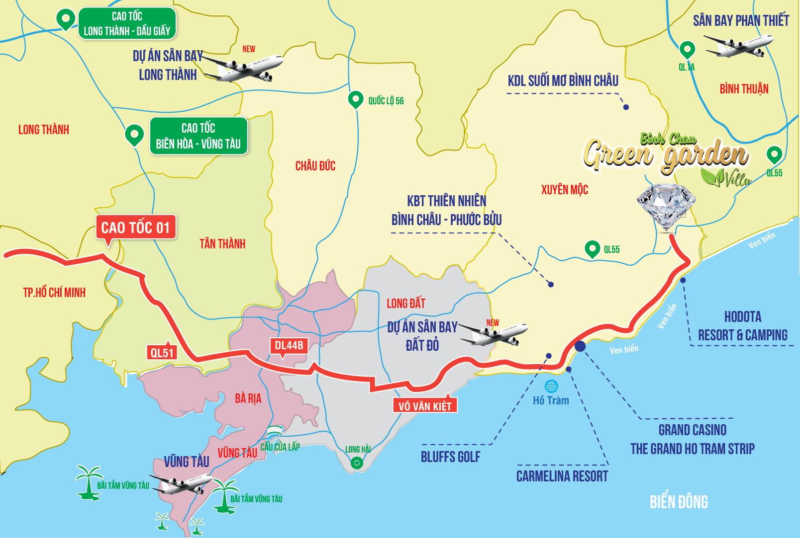 Cách TP.HCM – thành phố sôi động bậc nhất nước ta khoảng 100km, kết nối với các tỉnh lân cận trong khu vực Đông Nam Bộ bằng cao tốc Long Thành – Dầu Giây, cao tốc biển, Quốc lộ 51 và sắp tới đây là sân bay quốc tế Long Thành... Bà Rịa – Vũng Tàu ngày càng bộc lộ nhiều tiềm năng lớn để phát triển bất động sản, trong đó nổi bật nhất là bất động sản nghỉ dưỡng.
