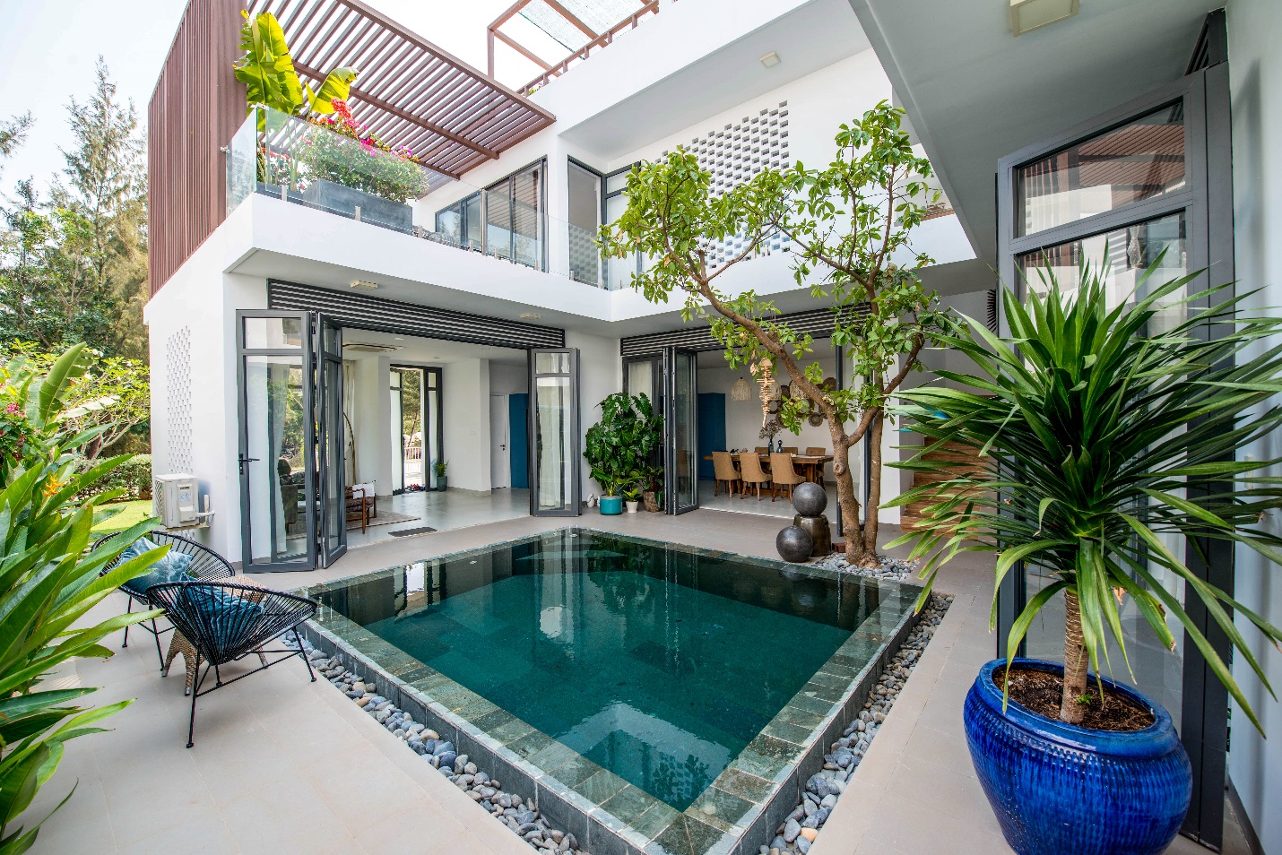 Bên cạnh yếu tố cạnh biển, 100% căn thuộc dự án đều được thiết kế thiết kế theo lối kiến trúc phóng khoáng của Bandapar (Paris, Pháp), được bao trọn bởi thiên nhiên xung quanh. Tối giản chi tiết, hiện đại không gian mở và hòa cùng với thiên nhiên chính là ý tưởng chủ đạo trong phong cách thiết kế. Hệ thống cửa kính lùa rộng cùng khu ban công thông thoáng trên tầng lầu, giúp gia chủ có thể quan sát được toàn bộ thiên nhiên bên ngoài, đồng thời hưởng trọn ánh nắng và làn gió mát từ biển. Cùng với đó, hồ bơi được thiết kế lồng ghép giữa khuôn viên nhà tạo nên một tiểu cảnh sinh hoạt chung cho cả gia đình, đồng thời vẫn đảm bảo sự riêng tư cho mỗi chủ nhân sống tại đây.