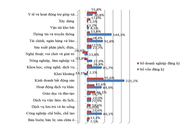 Theo đó, trong 11 tháng năm 2016, lĩnh vực kinh doanh dẫn đầu về số lượng doanh nghiệp thành lập mới với 2.825 doanh nghiệp đăng ký, tăng 95,6%; Y tế và hoạt động trợ giúp xã hội đăng ký 480 doanh nghiệp, tăng 55,8%; Giáo dục và đào tạo đăng ký 2.574 doanh nghiệp, tăng 46,1%....