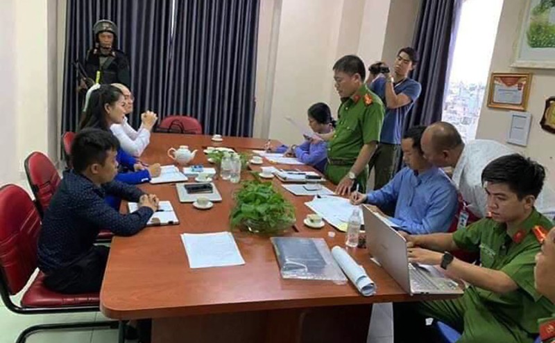 Công an làm việc với lãnh đạo công ty Alibaba. Ảnh: PLO.