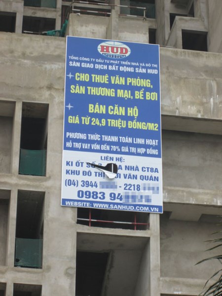 Quảng cáo chào bán ngay trên dự án đang xây dở (Khu Đô thị Văn Quán- Hà Đông).