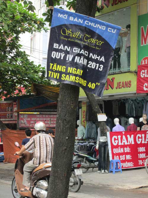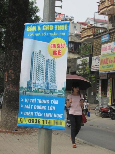 Chưa biết hiệu quả của việc tiếp thị, quảng cáo tới đâu nhưng qua khảo sát của phóng viên trên nhiều tuyến phố Hà Nội như: Thái Hà, Nguyễn Trãi, Lê Văn Lương… băng rôn quảng cáo chào bán những dự án, chưng cư VIP, căn hộ tiền tỷ treo la liệt làm mất mỹ quan đô thị.