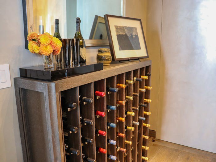 Căn hộ cũng được trang bị một quầy bar nhỏ nhắn đi kèm với một tủ rượu vang để gia chủ có thêm sự lựa chọn cho việc thư giãn. Ảnh: Business Insider.