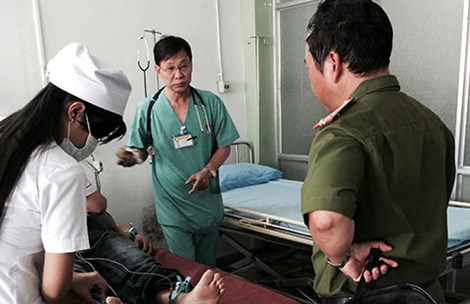 Ông N. bị ngất xỉu tại Công an phường Phú Hài và được lực lượng công an đưa đến bệnh viện cấp cứu. Ảnh: PN