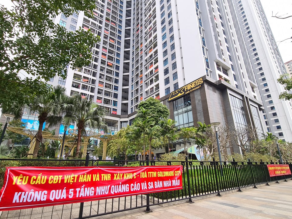 Sau những ngày căng băng rôn phản đối chủ đầu tư, ngày 4.3 vừa qua, cư dân dự án khu nhà ở - văn phòng - dịch vụ (dự án Goldmark City) tại 136 Hồ Tùng Mậu, quận Bắc Từ Liêm (Hà Nội) do Công ty CP TNHH Quảng cáo - Xây dựng - Địa ốc Việt Hân (Công ty Việt Hân) làm chủ đầu tư đã có buổi làm việc với chủ đầu tư và chính quyền địa phương.