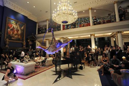 | Các nghệ sĩ biểu diễn trong phiên đấu giá bán ngôi nhà của Dean, diễn ra trong chính ngôi nhà hôm thứ sáu. Ảnh: New York Times |