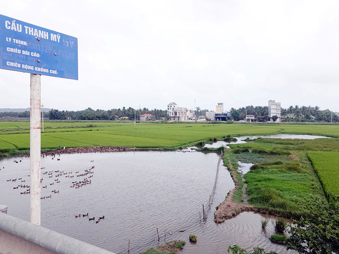 Nhiều diện tích ruộng tại khu vực cầu Thạnh Mỹ trên QL1 qua địa phận H.Hoài Nhơn bị bỏ hoang. Ảnh: Hoàng Trọng