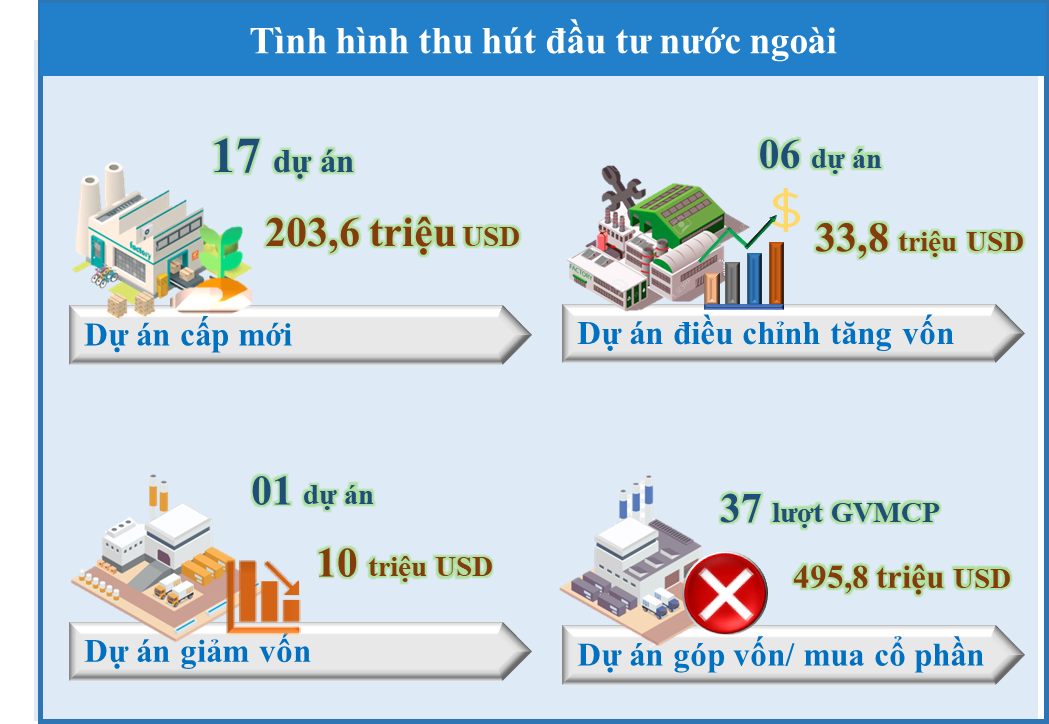 Tính đến hiện tại, tỉnh Bình Dương đã thu hút hơn 40 tỷ đô từ 65 quốc gia và vùng lãnh thổ, đứng thứ 2 cả nước về thu hút vốn đầu tư nước ngoài (FDI), chỉ sau TP.HCM, đóng góp 8,9% vào tỷ trọng FDI cả nước (tăng hơn 40 lần về số doanh nghiệp và hơn 90 lần về vốn so với năm 1997). Nguồn vốn FDI tập trung ở các địa phương là thành phố trực thuộc tỉnh như Thuận An, Dĩ An, Thủ Dầu Một, Tân Uyên.