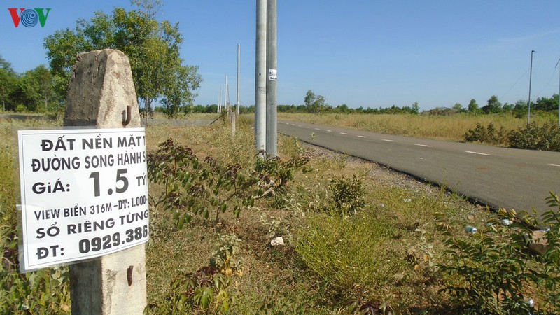 Xung quanh các tuyến đường cũng xuất hiện dày đặc biển quảng cáo mời gọi sang nhượng đất nền. Không chỉ được thảm nhựa sáng bóng mà dọc các con đường này còn được đầu tư hàng dài các trụ điện, chuẩn bị cho việc hạ thế. Phía bên trong từng khu đất được cắm mốc, có dấu hiệu phân lô bán nền.