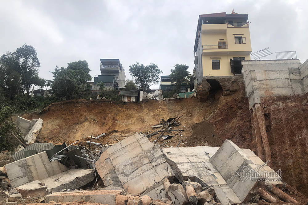 Hiện, các lối vào hiện trường đã được dựng hàng rào và có lực lượng chức năng bảo vệ ngăn người dân tới gần, tránh nguy hiểm. 16 hộ dân được di dời để đảm bảo an toàn.
