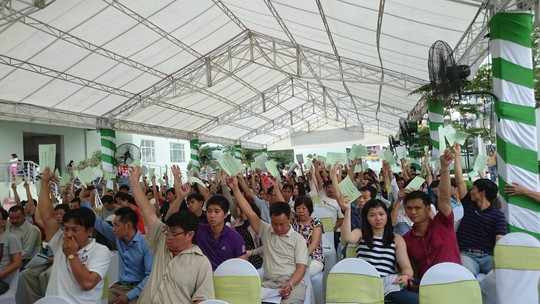 Gần 200 đại biểu đại diện cho các hộ dân sống tại khu chung cư Nhất Lan 3 (quận Bình Tân, TP HCM) đã tham gia hội nghị nhà chung cư để bầu ra ban quản trị chung cư, tranh luận với chủ đầu tư về các vấn đề còn tồn tại ở chung cư này.