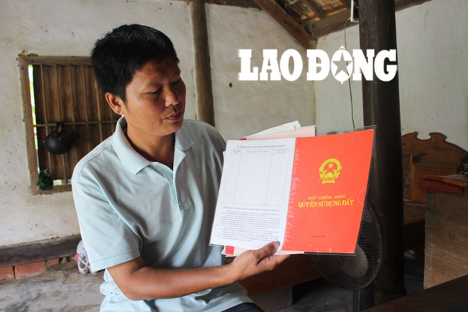 Sau khi đóng nộp lệ phí theo quy định, ngày 16.12.2008, anh Vinh được UBND huyện Cẩm Xuyên cấp GCNQSDĐ lô đất ở có diện tích 398,22m2 nói trên. Tuy nhiên, từ thời điểm được cấp đất, cầm bìa đỏ trong tay, đến nay gia đình anh Lê Quang Vinh vẫn không thể làm nhà ở. Nguyên nhân, do UBND xã Cẩm Mỹ còn thiếu thủ tục giải phóng mặt bằng, giao đất thực địa khi có hộ dân khác trồng cây trên lô đất đó.