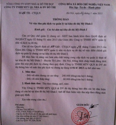 Việc công ty MHDI3 quyết định tăng phí dịch vụ lên gấp đôi khi chưa đưa ra những căn cứ để tăng, chưa có những buổi làm việc với người dân để giải thích cụ thể... sẽ gây phản ứng tiêu cực trong cư dân.