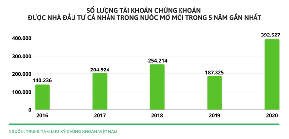 Đây cũng là số lượng tài khoản lớn nhất được nhà đầu tư cá nhân trong nước mở chỉ trong một năm, cao nhất trong vòng 20 năm trở lại đây.