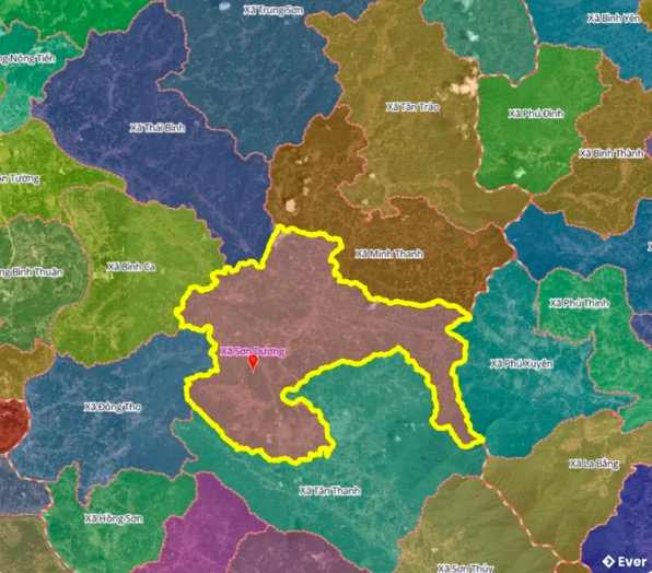 Hình ảnh xã Sơn Dương trên bản đồ sau sáp nhập.