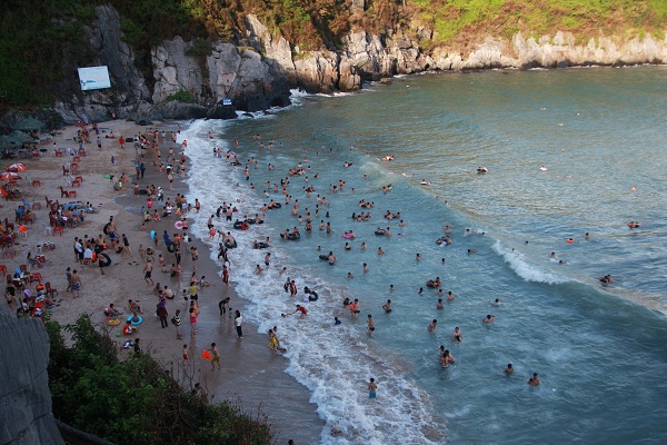 Bãi biển Cát cò 1 (Cát Bà) đông đúc vào mùa du lịch