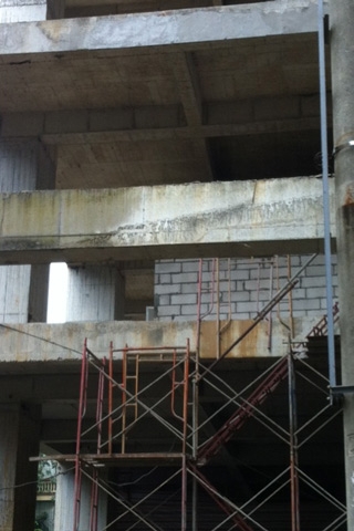 Cuối năm 2011, sau khi triển khai đến tầng 10 tòa chung cư và rót khoảng 400 tỷ đồng, dự án đã dừng công trình do thiếu vốn.