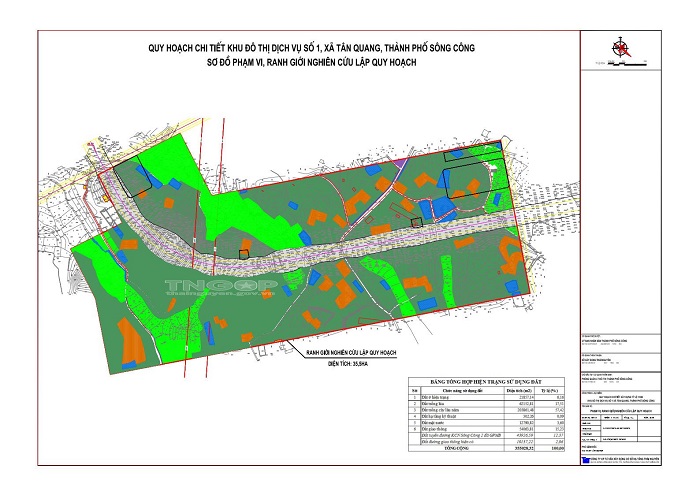 Sơ đồ phạm vi, ranh giới nghiên cứu lập Quy hoạch chi tiết Khu đô thị dịch vụ số 1, xã Tân Quang, TP.Sông Công.