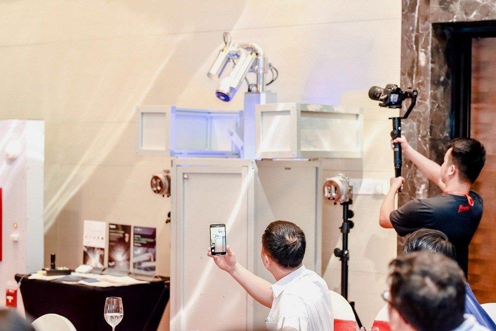 Đáng chú ý nhất trong buổi hội thảo là việc giới thiệu và demo hoạt động của Spraysafe - giải pháp chữa cháy tự động bằng cánh tay rô bốt cho bên ngoài tòa nhà.