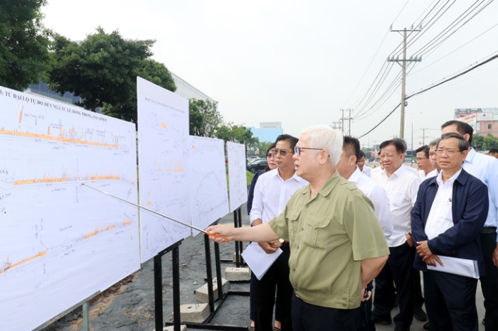 Bí thư Tỉnh ủy Bình Dương chỉ đạo tiến độ đối với các dự án giao thông chậm tiến độ (ảnh: Cổng TTĐT Bình Dương)