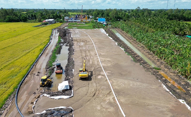 Thời gian qua, do thiếu hụt nguồn vật liệu san lấp nên đã ảnh hưởng đến tiến độ thực hiện công trình. Tính đến giữa tháng 9/2024, mới đạt trên 5% giá trị hợp đồng.