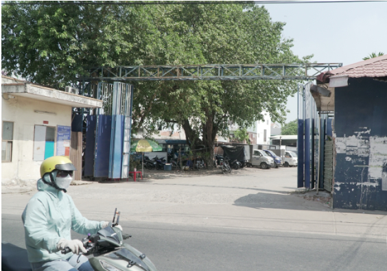 Cổng vào bãi đậu xe ô tô và kho bãi cho thuê trên đường Phạm Phú Thứ