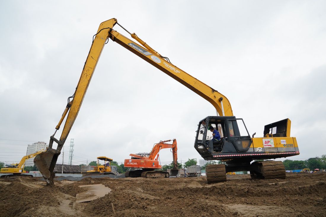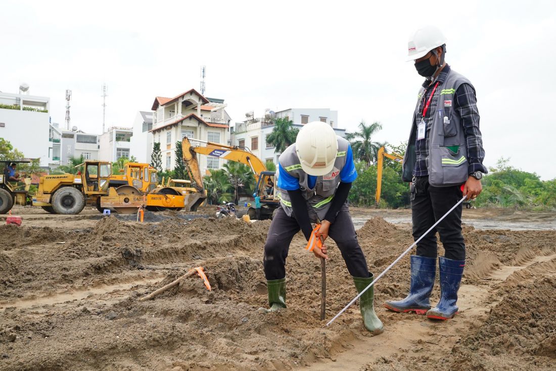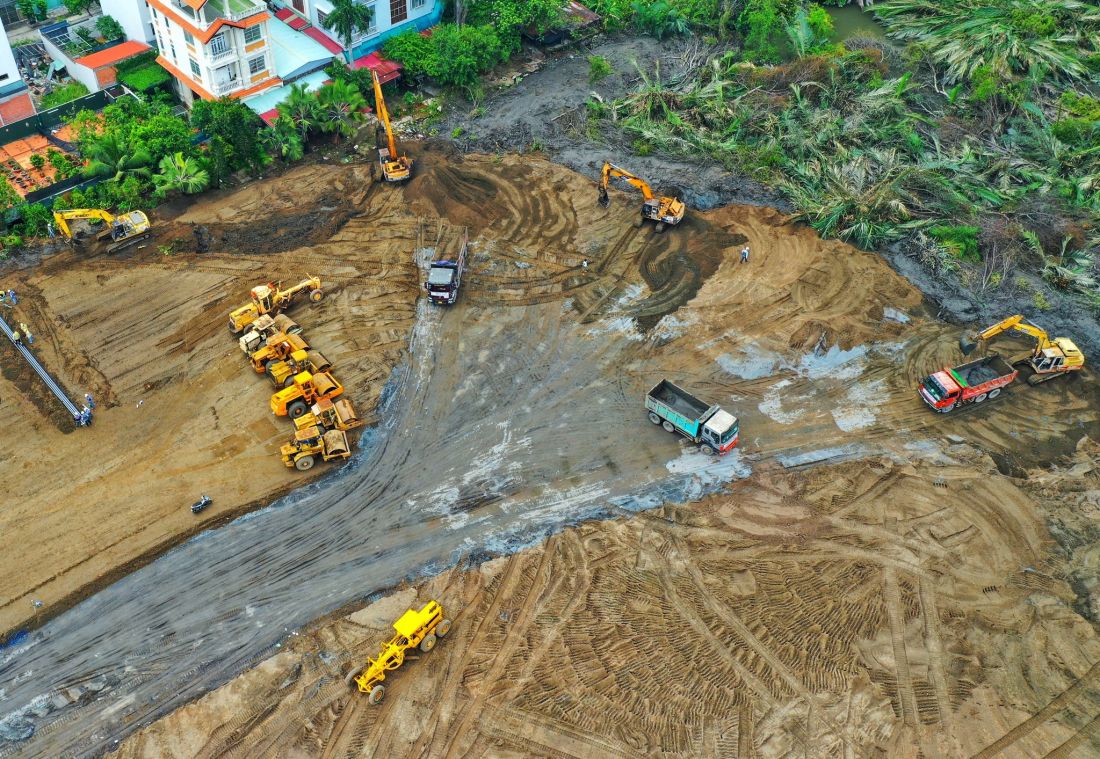 Trong 1 tuần qua, hằng ngày có hàng chục xe ben chở cát, đá xếp hàng dài trên đại lộ Nguyễn Văn Linh thuộc địa bàn xã Bình Hưng, H.Bình Chánh (TP.HCM). Sau đó lần lượt từng xe chạy vào lô đất số 6, khu 9A + B, Khu đô thị mới Nam TP. Bên trong công trường, các xe múc, xe ủi và hàng trăm công nhân miệt mài làm làm việc.