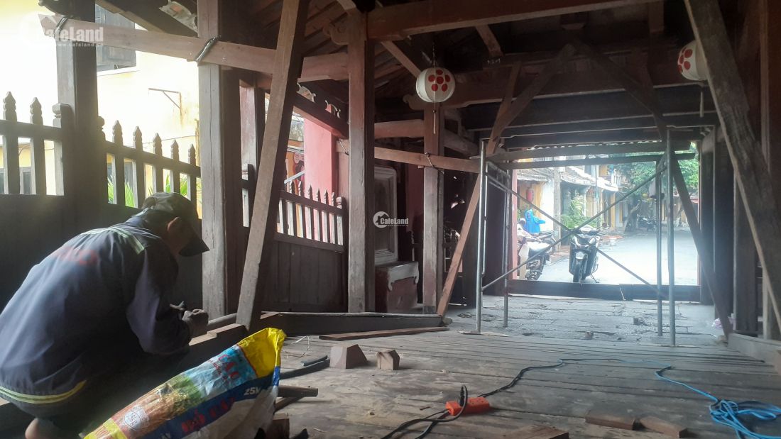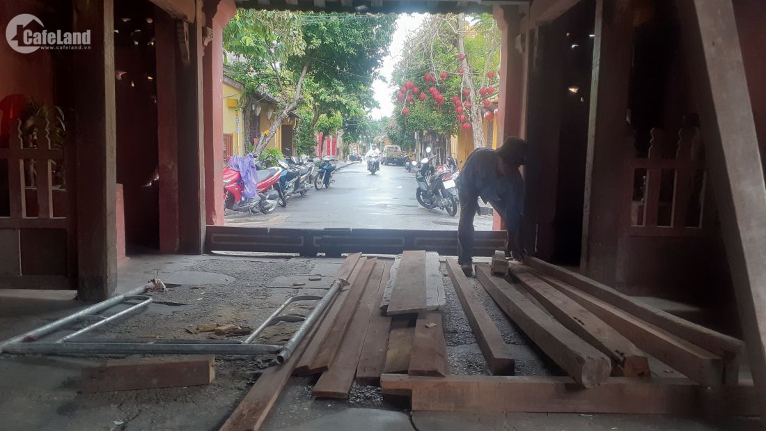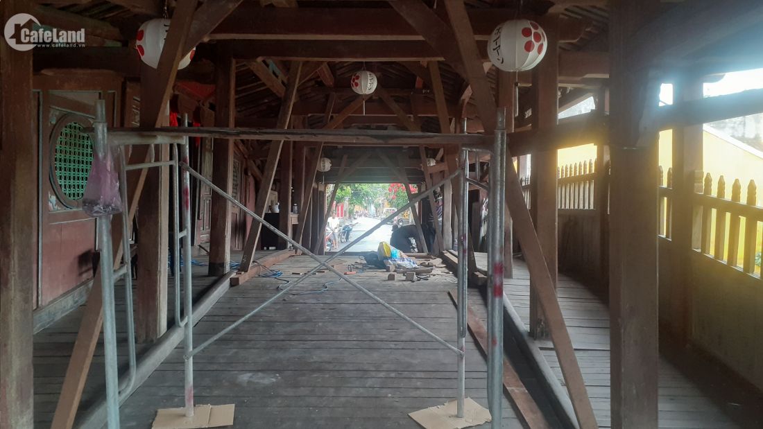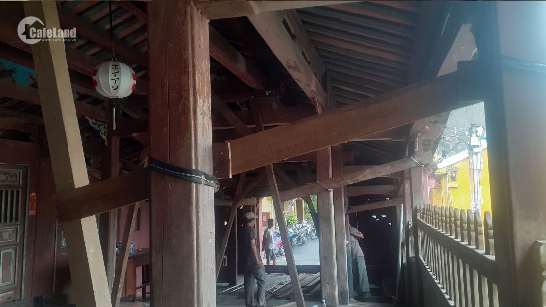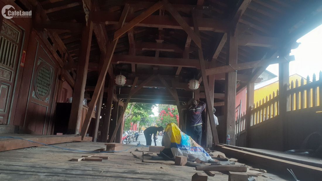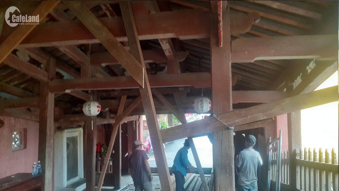 Gia cố bảo vệ Chùa Cầu bằng nhiều thanh gỗ lớn