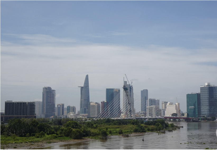 Ghi nhận thực tế những ngày cuối tháng 10.2021, trên công trường dự án cầu Thủ Thiêm 2 các đơn vị thi công đang hối hả hoàn thành những hạng mục quan trọng của dự án (trong ảnh là phần cầu hướng nhìn từ khu đô thị Thủ Thiêm).