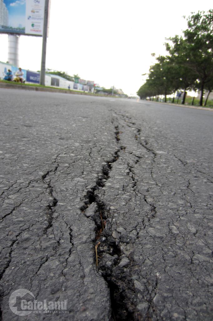 Vết nứt trên đại lộ Võ Văn Kiệt có bề rộng 1-1,5cm, kéo dài 4-5m.
