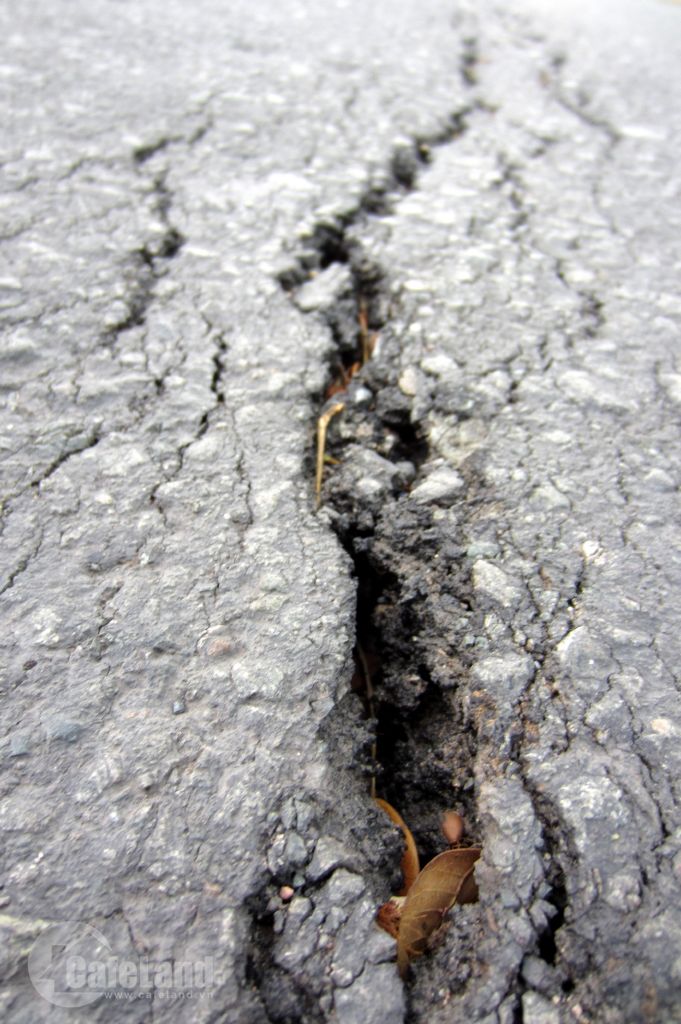 Vết nứt xuất hiện trên làn đường ô tô.