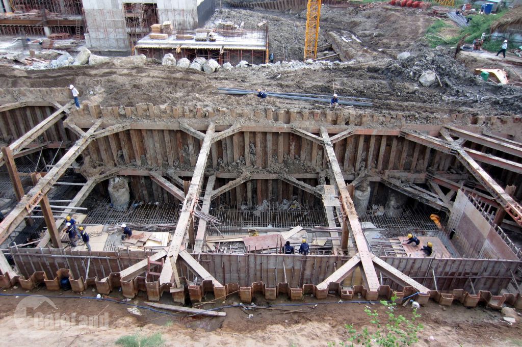 Tiến độ thi công công trình mới chỉ đào móng cọc. Nhà đầu tư cam kết sẽ giao nhà vào năm 2017.