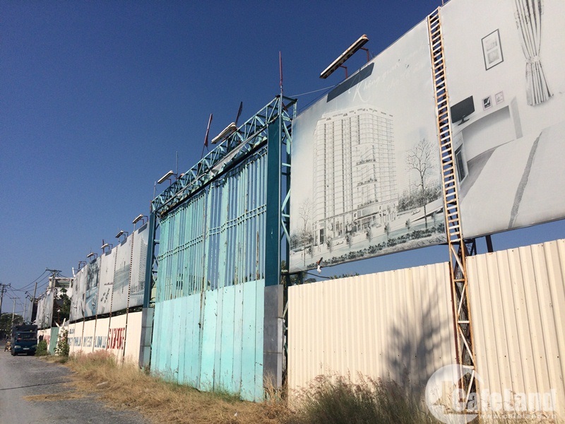 Cỏ dại xâm lấn những tấm pano quảng cáo dự án.