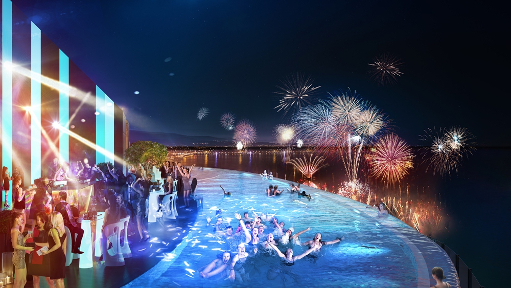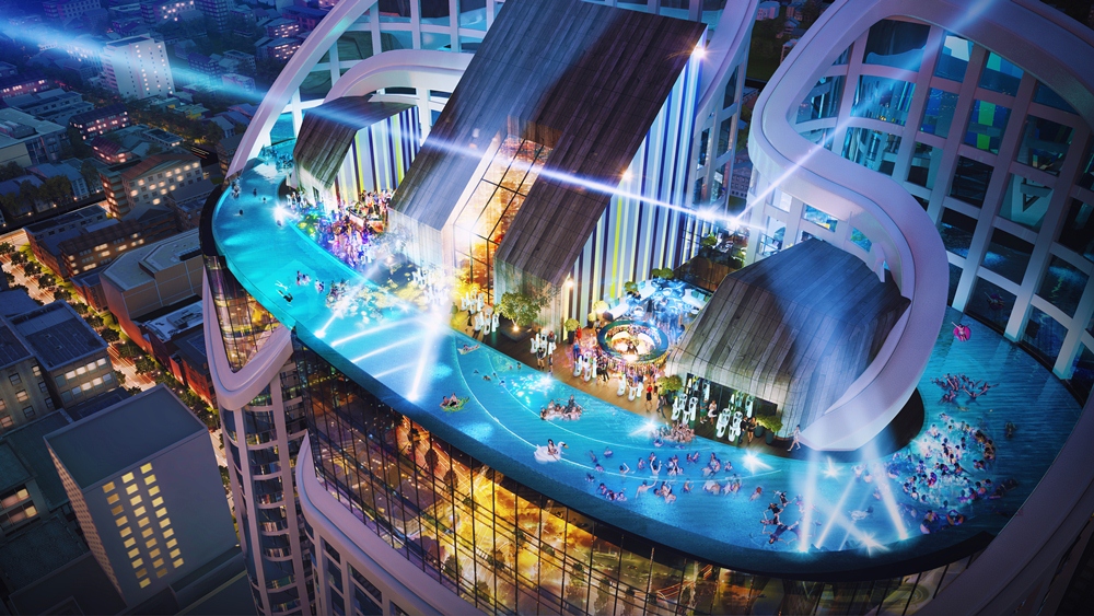 Tại Panorama, lần đầu tiên tại Việt Nam sẽ có một bể bơi nước mặn vô cực đáy kính trên mái tòa tháp.
