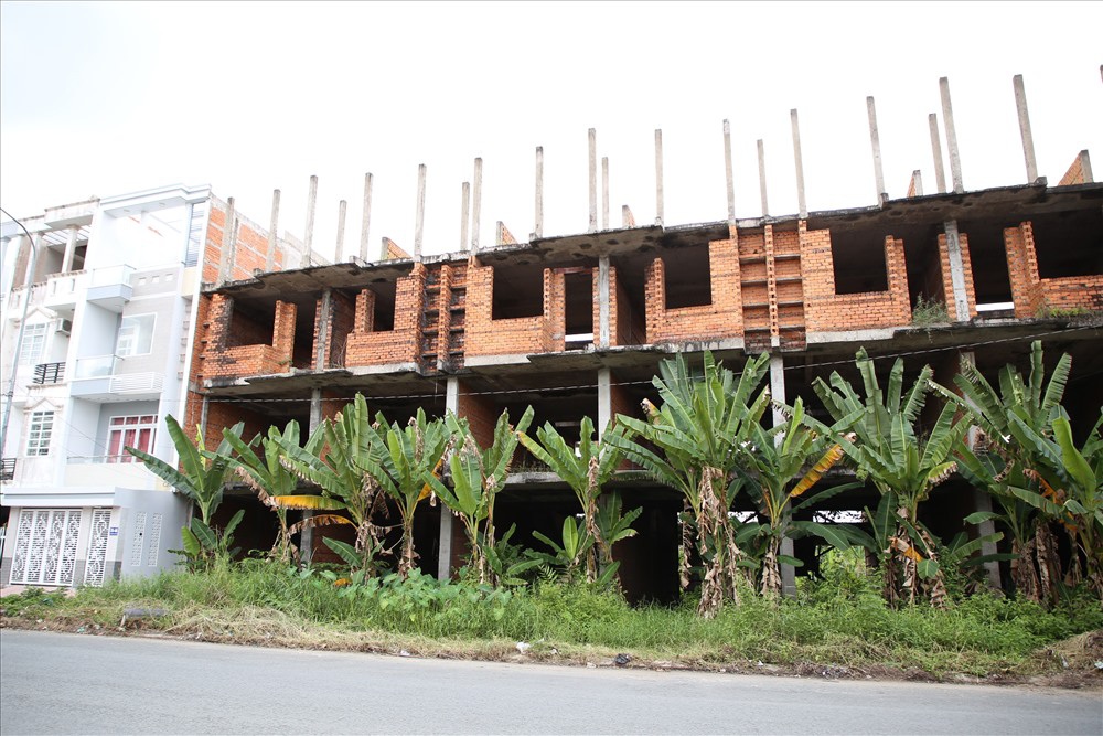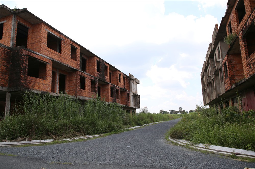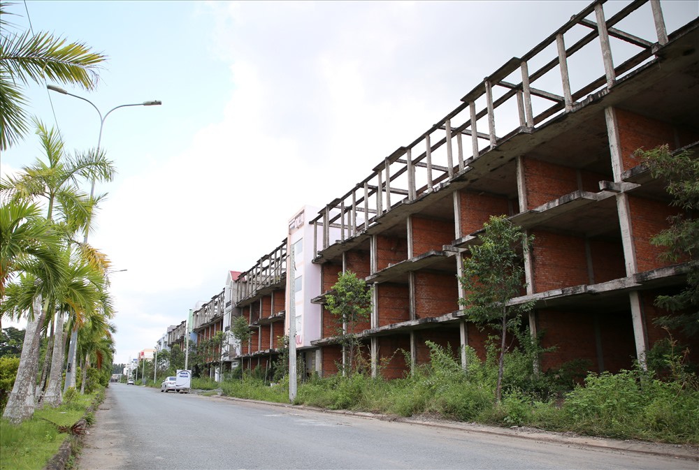Khu dân cư Phú An do Cty CP xây dựng công trình giao thông 586 – Chi nhánh Cần Thơ xây thô rồi nằm bất động một thời gian dài. Ảnh: Tr.Lưu.
