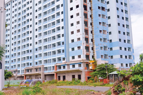Chung cư 584 Tân Kiên đã ngưng thi công 2 năm nay. Ảnh: M.Tuấn