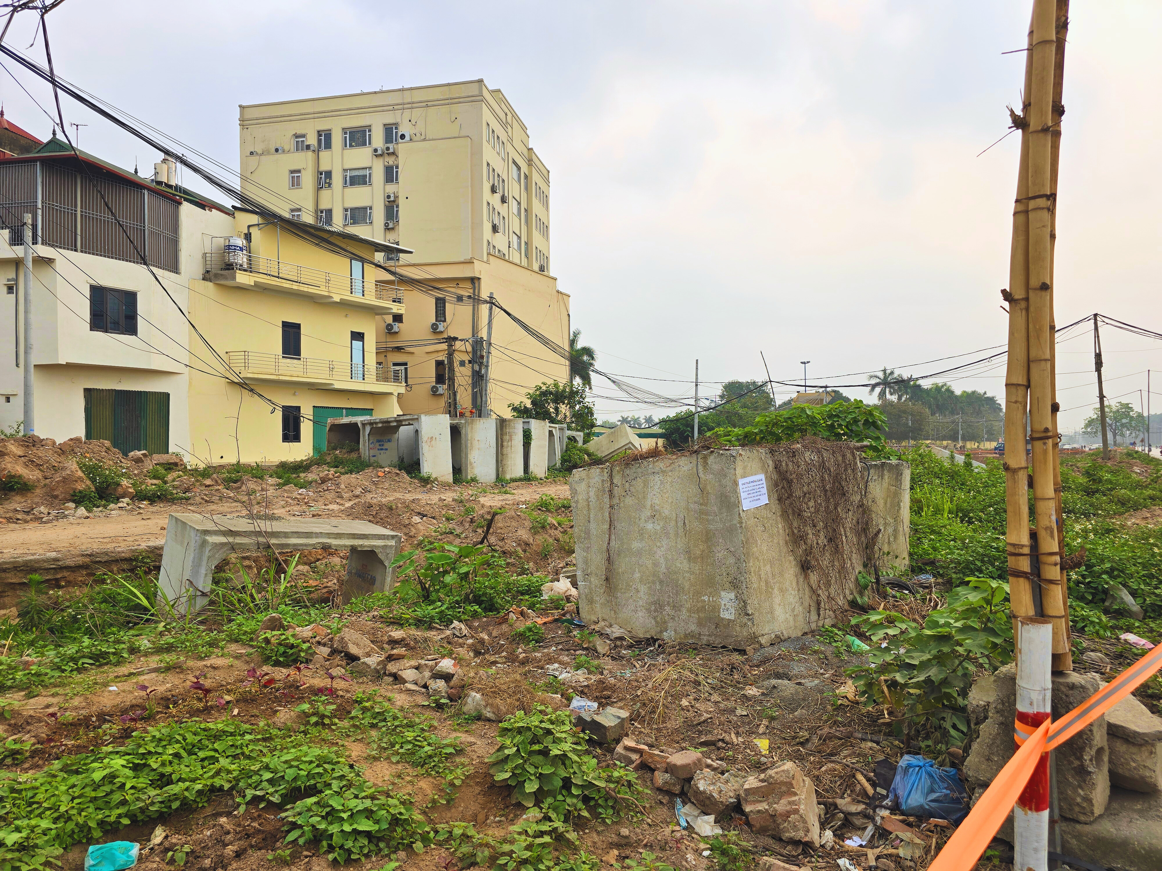 Nhiều ngôi nhà kiên cố vẫn hiện hữu ngay giữa lòng đại lộ tương lai. Công tác giải phóng mặt bằng tại Cổ Nhuế 2 đang gặp khó khăn, song quận Bắc Từ Liêm cam kết sẽ hoàn thành trong quý II/2025 để kịp thông xe kỹ thuật vào tháng 10.