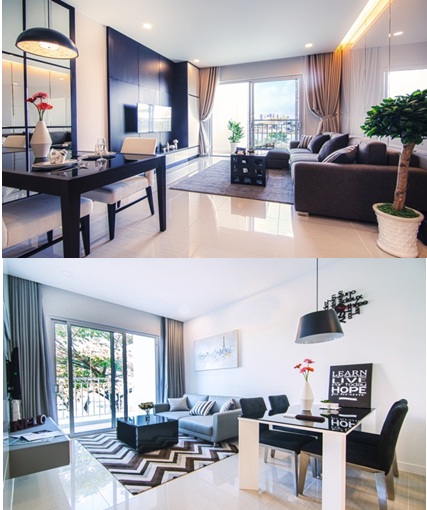 Hình ảnh phòng khách – căn hộ 2 và 3 phòng ngủ, nhà mẫu Sunrise Riverside
