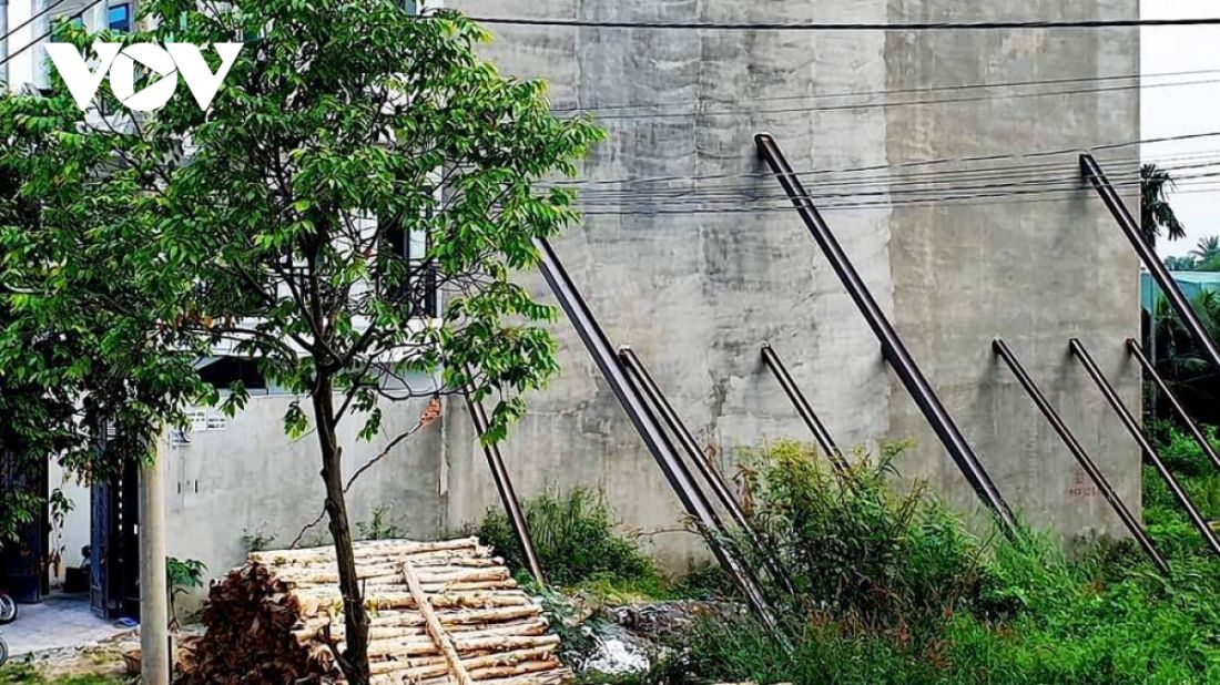 Địa phương sử dụng các thanh sắt chống đỡ cho căn nhà.