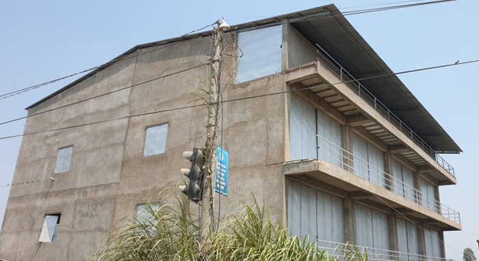 Căn nhà của bà Duyên xây phần khung, tường bao quanh, chưa hoàn thiện, bên trong không có cầu thang lên các tầng trên