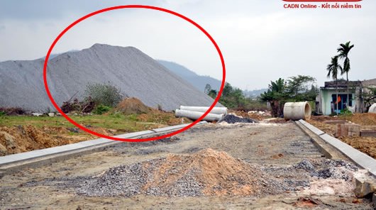 Đá đã chế biến và đá nguyên liệu của Cty Nho Chiến tập kết chắn ngang một số tuyến đường đang thi công.
